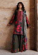 Radiate elegance in Charizma’s embroidered printed linen suit set, featuring an olive base with vibrant red floral motifs. Intricate embroidery on the neckline and borders enhances its festive charm, while...