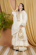 Step into refined elegance with Charizma’s embroidered printed linen suit set, showcasing intricate blue diamond motifs and delicate lace accents. The coordinated dupatta enhances its luxurious appeal, while breathable linen...