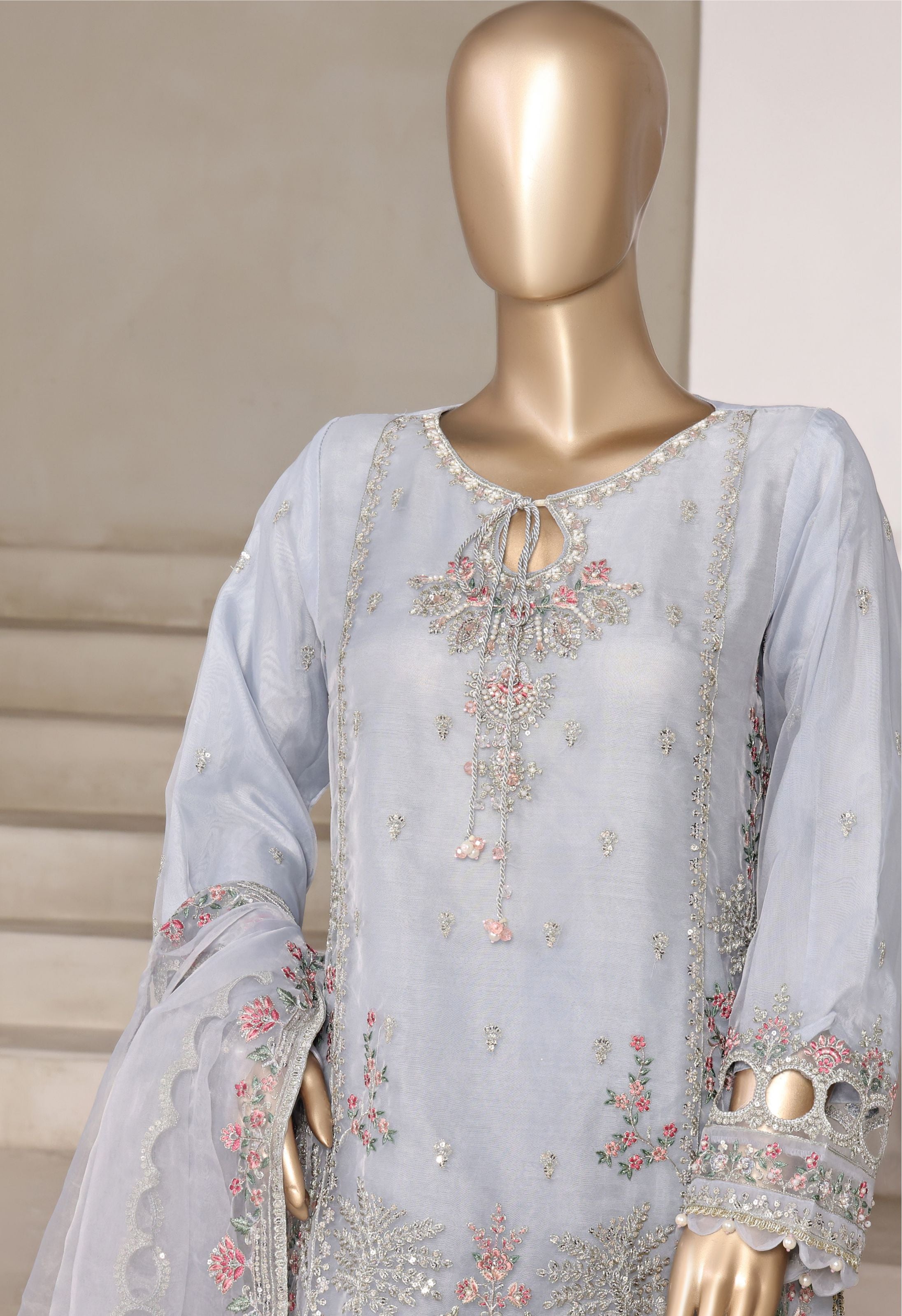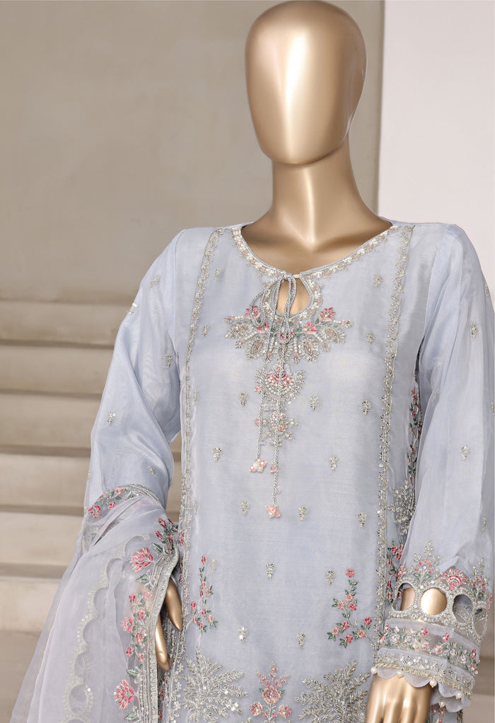 Powder Blue Embroidered Organza Suit with Farshi Salwar - Sadabahar