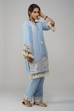 Sky Blue Cotton Tunic Set - Noor-e-Rang