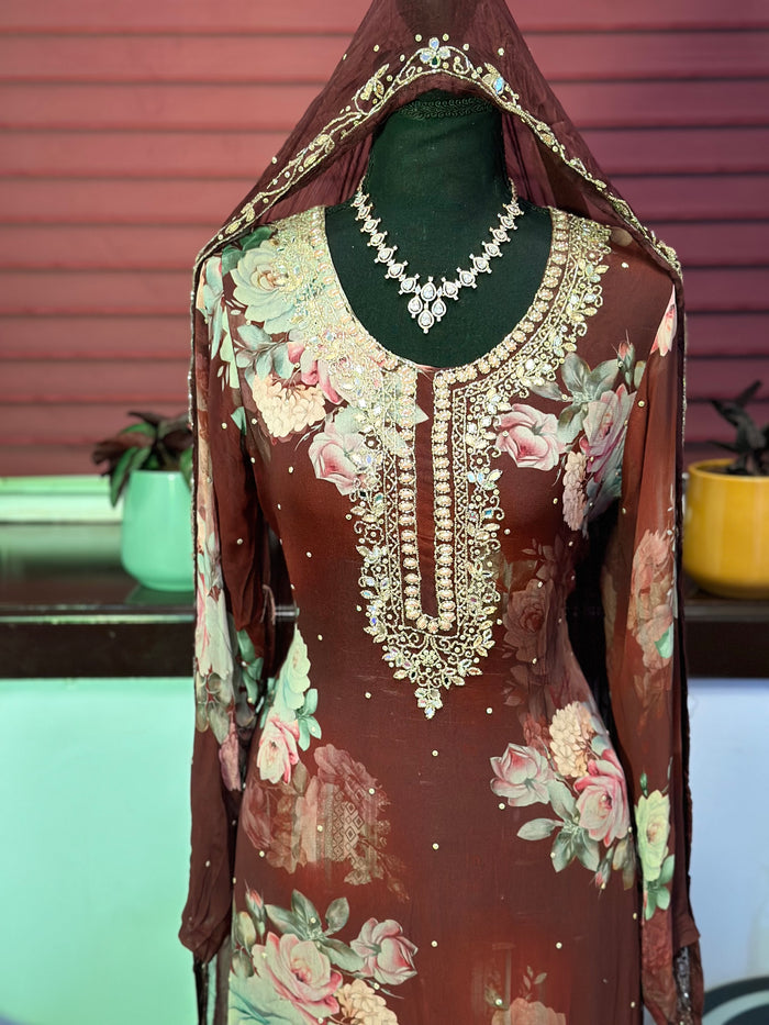Indulge in the beauty of traditional craftsmanship with our Handcrafted Sharara. Each piece is meticulously crafted by skilled artisans, resulting in a garment that exudes elegance and quality. Elevate your...