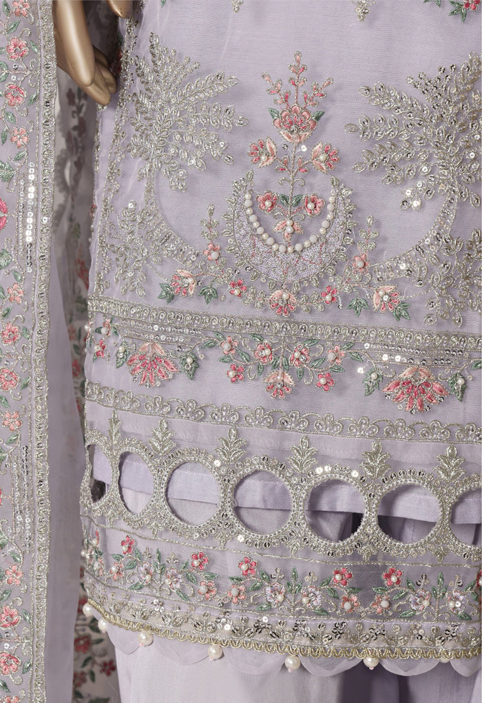 Lilac Hand Embroidered Organza Suit with Farshi Salwar - Sadabahar