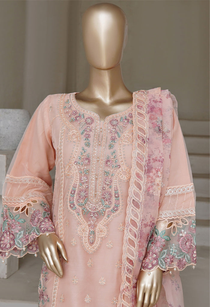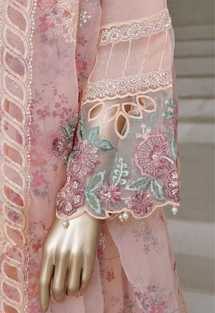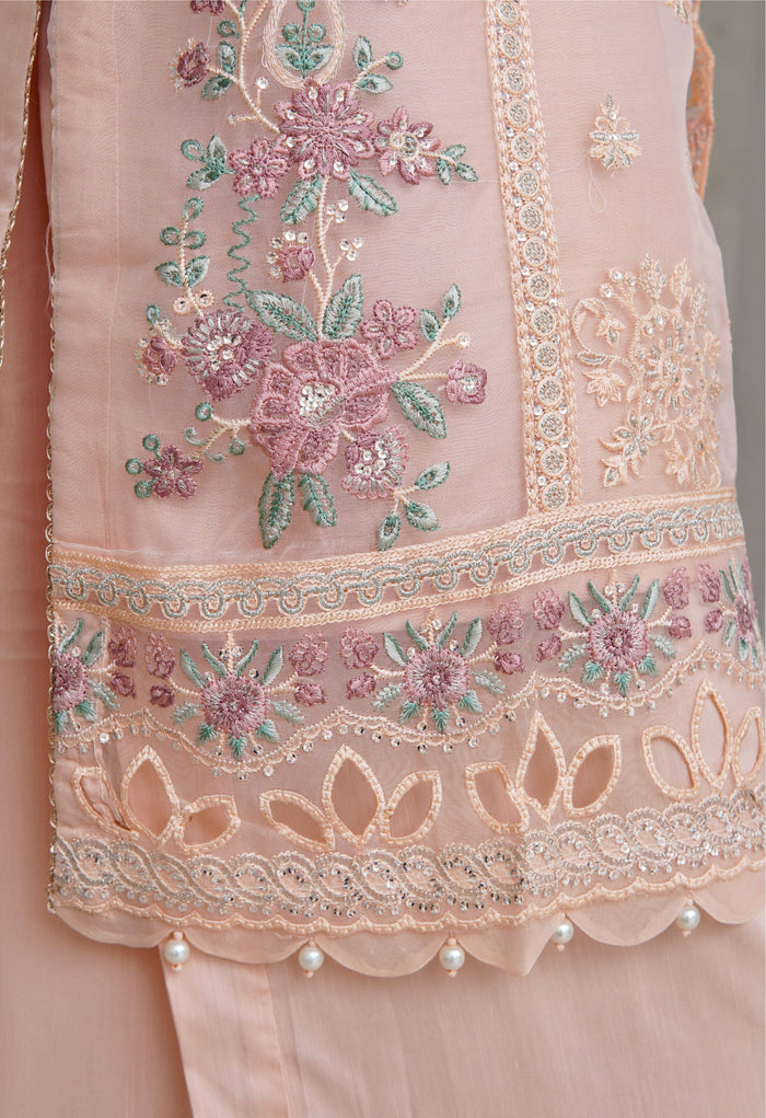 Peach Embroidered Organza Suit with Floral Dupatta - Sadabahar